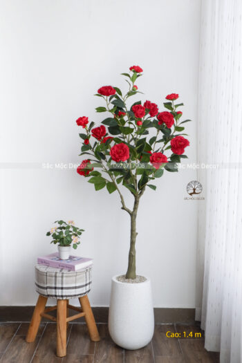 Cây Hoa Trà Màu Đỏ Giả Cao 1,4m